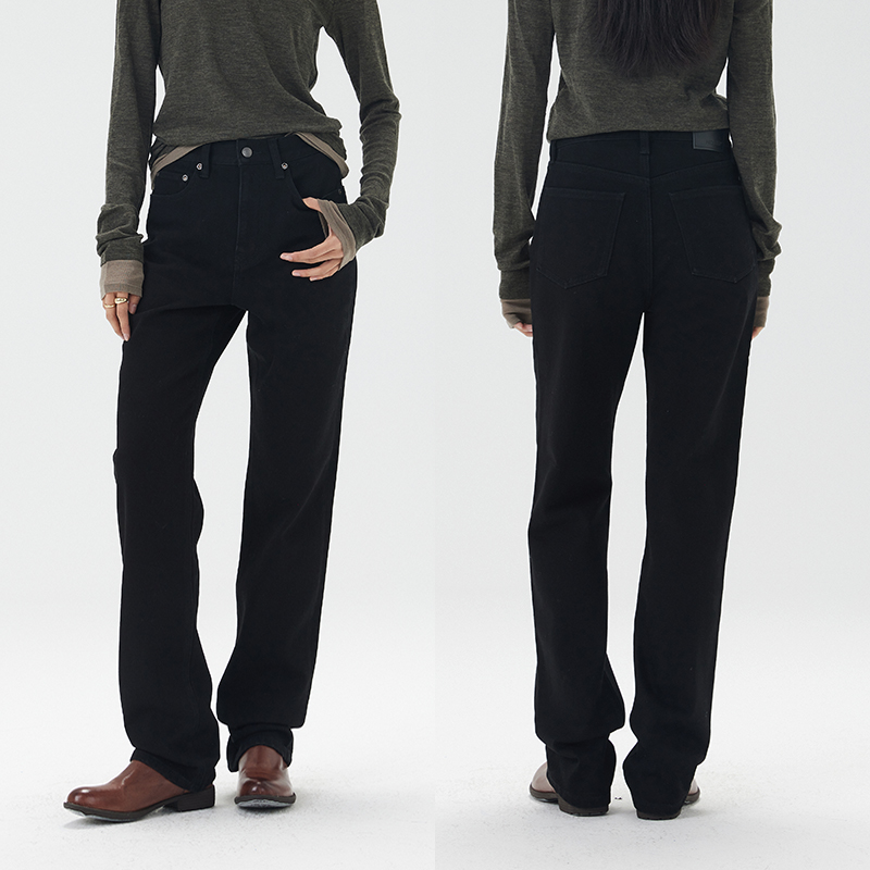 黑色加绒牛仔裤女2025新款秋冬版型好看裤子高腰直筒裤美式阔腿裤