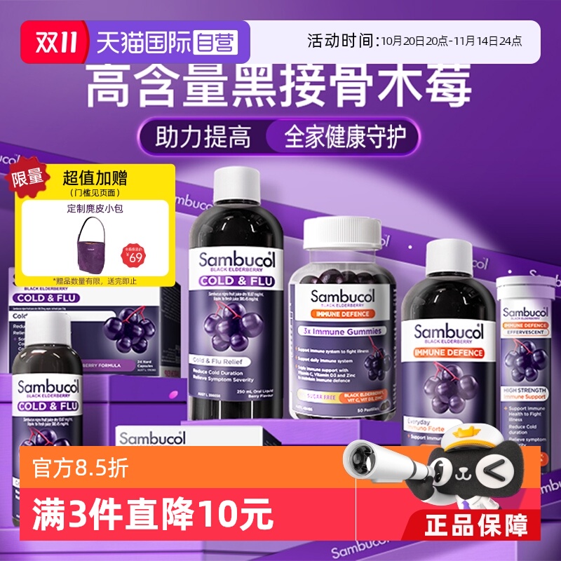 黑接骨木莓儿童糖浆澳洲Sambucol善倍康维生素C婴儿黑果免疫力