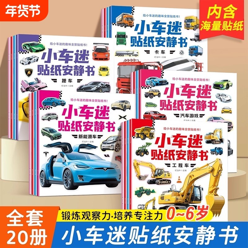 【全20册】小车迷贴纸安静书 0-3-6岁儿童 趣味认知贴纸书贴贴画小车迷趣味全景贴纸 专注力训练书 启蒙游戏 全脑开发幼儿早教书籍