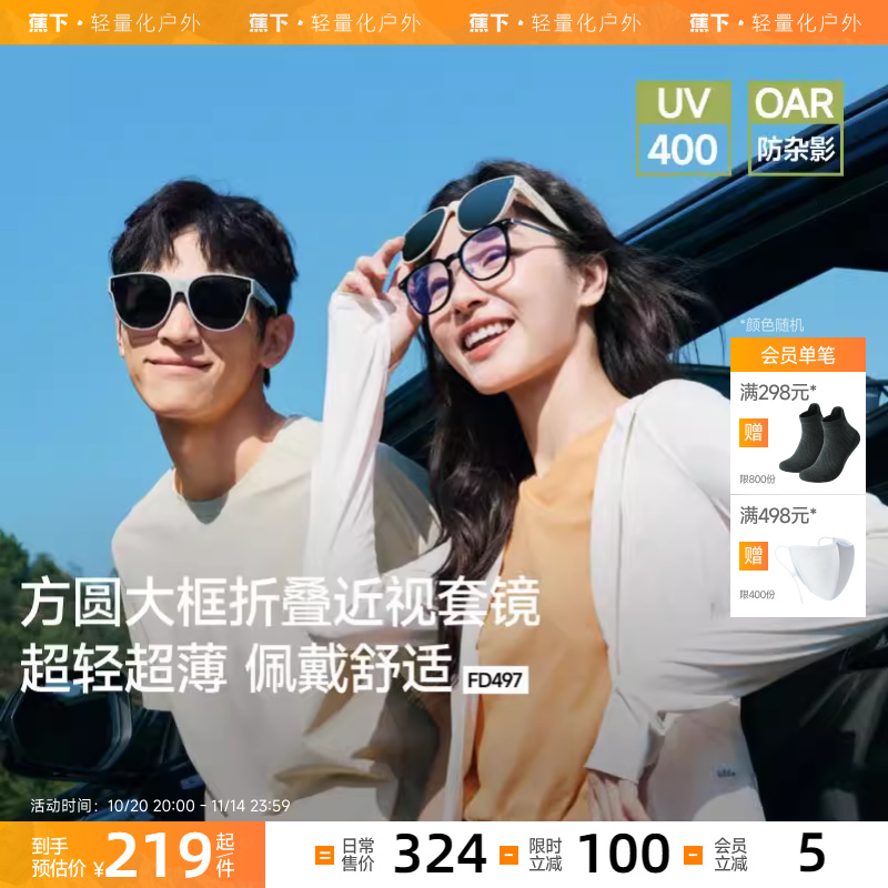 蕉下方框套镜FD497可套近视眼镜偏光太阳镜男款开车女士墨镜镜夹