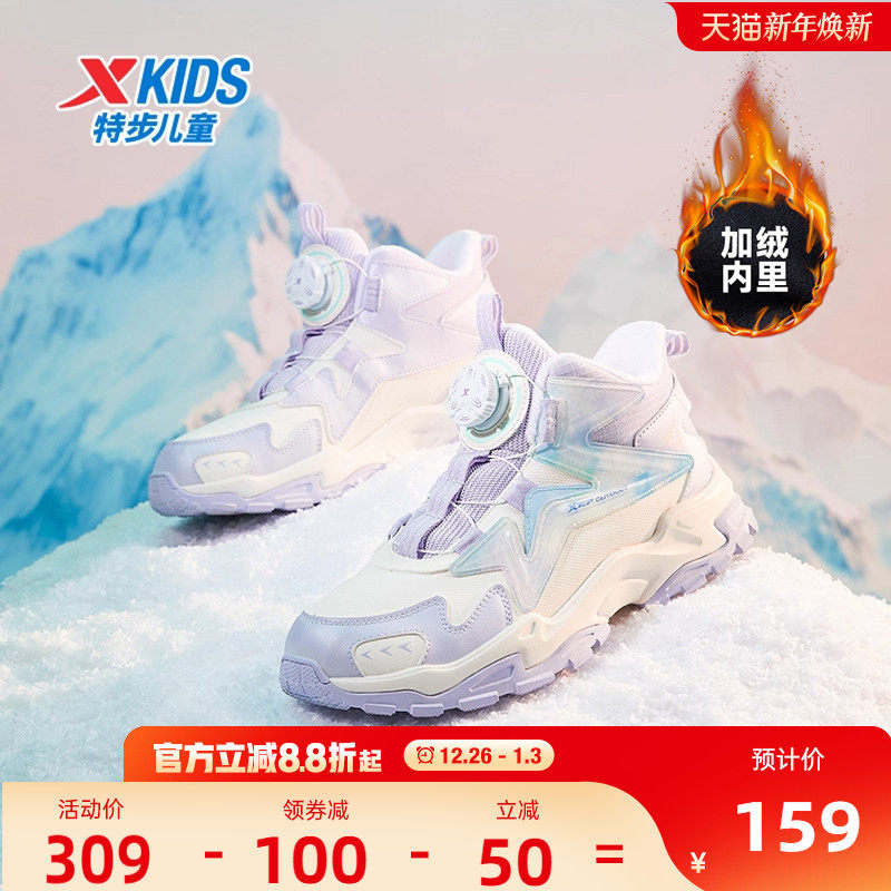 特步儿童鞋冬季新款高帮鞋皮面保暖鞋棉鞋女童冬鞋中大童运动鞋子