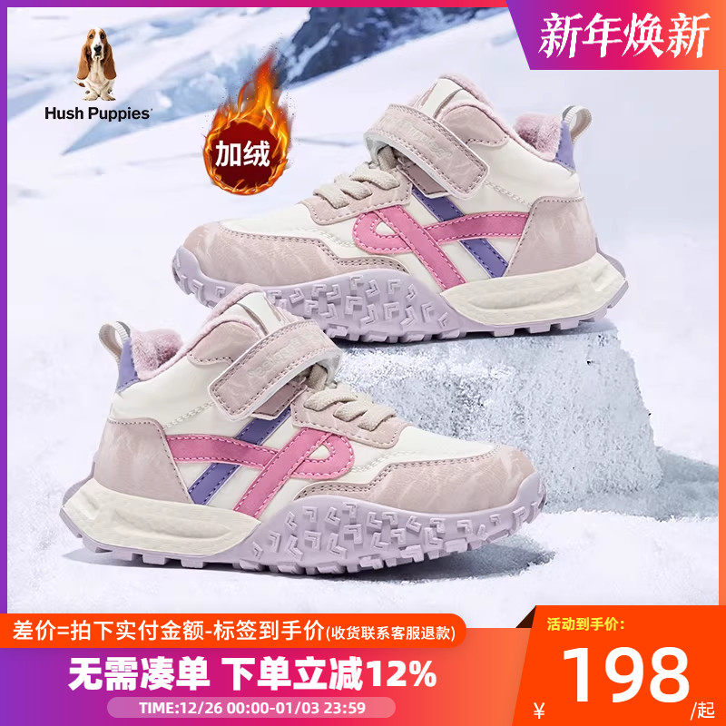 暇步士儿童运动鞋女童鞋子冬季新款软底登山女孩防滑加绒保暖棉鞋