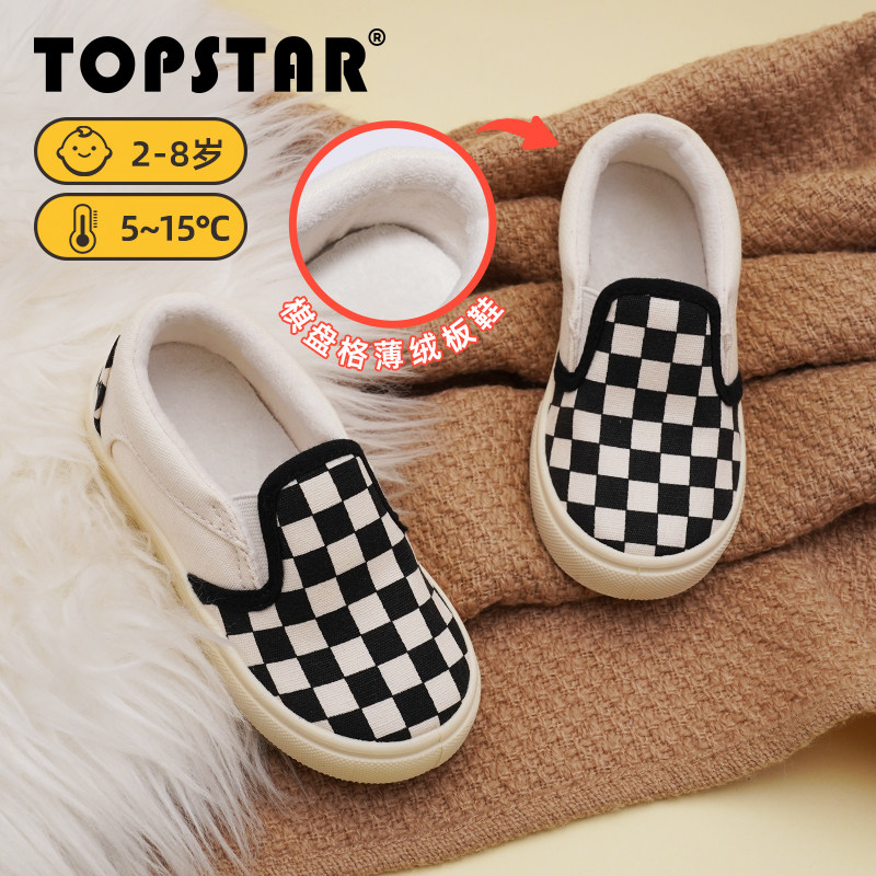 TOPSTAR儿童棉鞋棋盘格加绒板鞋男童冬鞋女童运动棉鞋秋冬加绒鞋