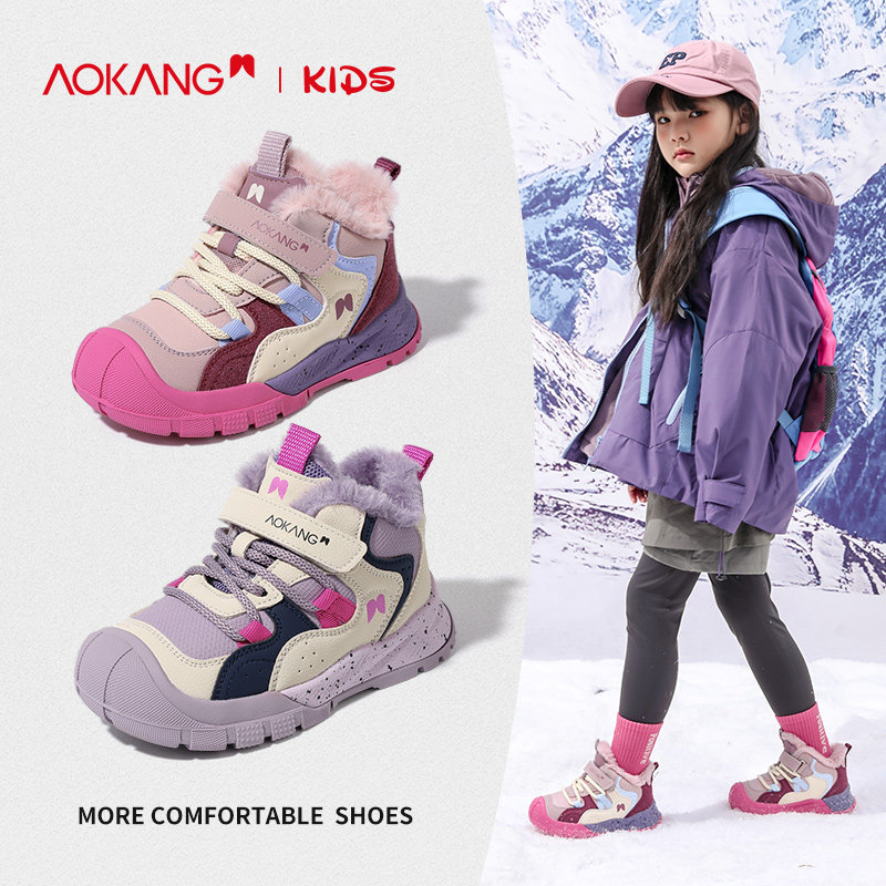 奥康童鞋女童运动棉鞋保暖冬季2025加厚加绒女孩保暖鞋防滑雪地鞋