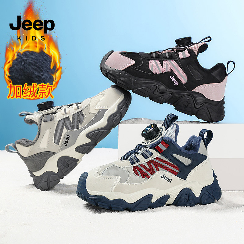 jeep男童加绒二棉鞋2025冬季防滑户外儿童保暖登山鞋女童运动棉鞋