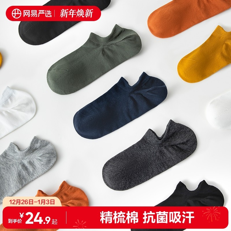 网易严选精梳棉抑菌短袜男浅口隐形船袜女防臭吸汗透气夏中筒袜子