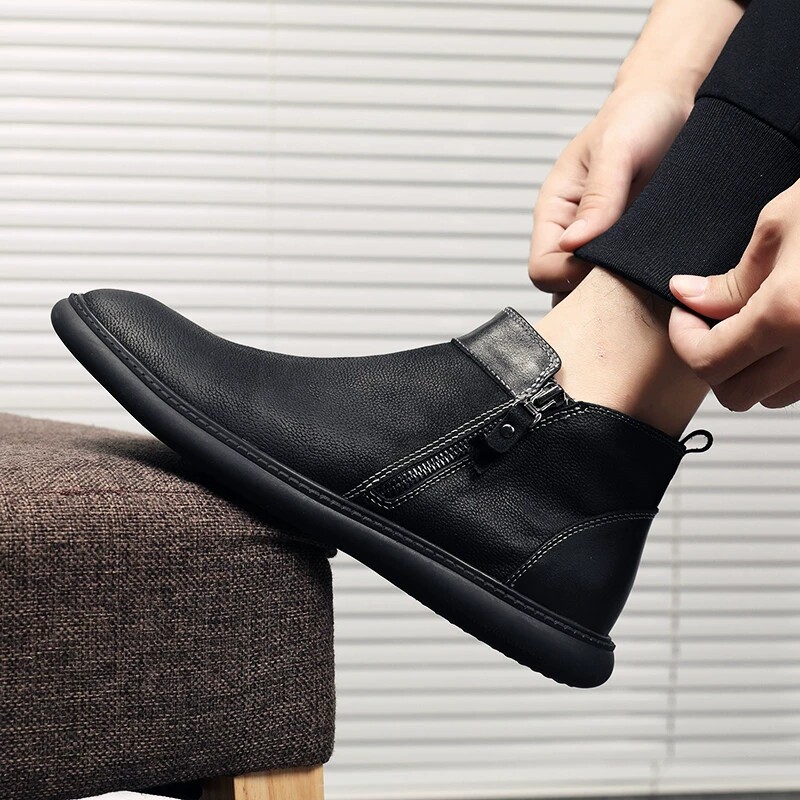 欧洲站男鞋2025秋冬季头层牛皮靴子高帮鞋子套筒皮靴高帮休闲鞋男