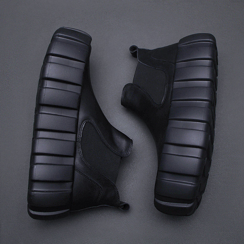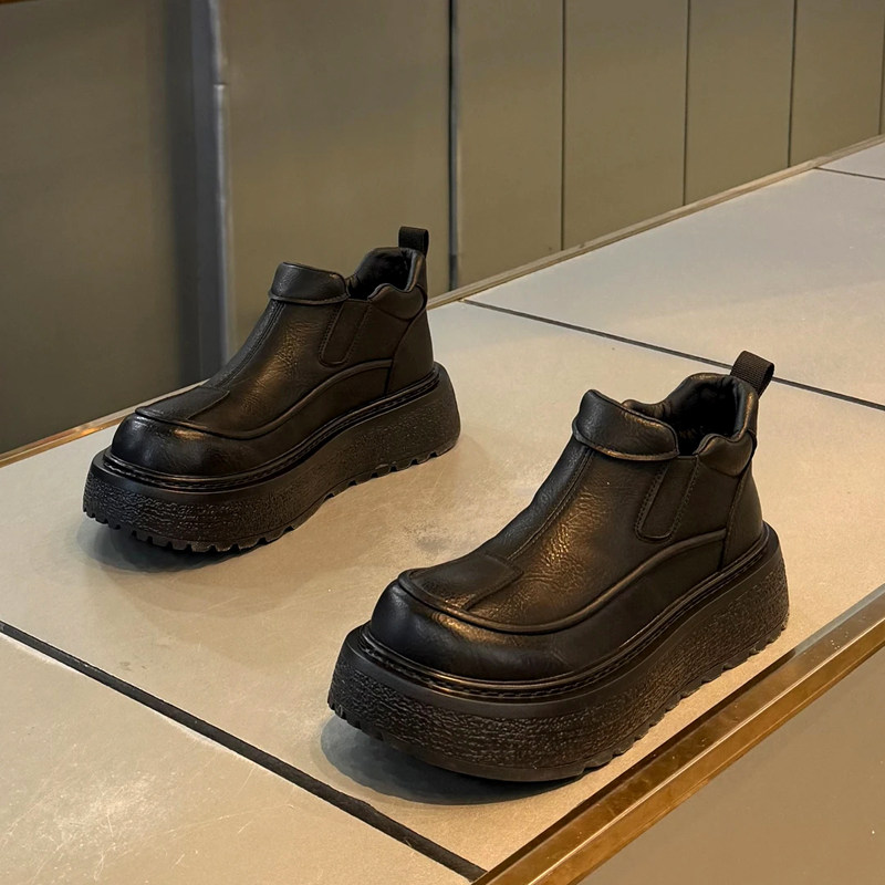 欧洲站冬季加绒男鞋高帮鞋头层牛皮一脚蹬厚底短靴套筒切尔西靴潮