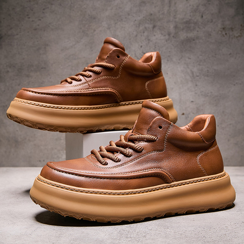 欧洲站2026秋冬季新款高帮男鞋真皮厚底小白鞋男韩版系带马丁靴男