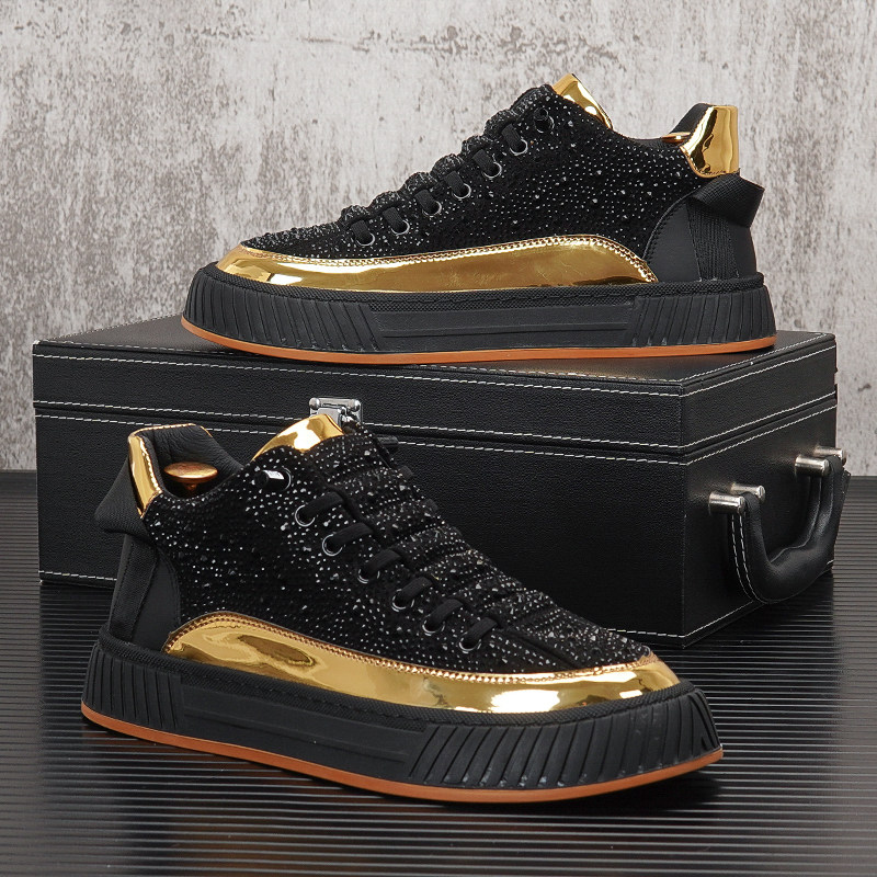 欧洲站高帮男鞋冬季时尚水钻厚底潮鞋英伦真皮内增高休闲男士短靴