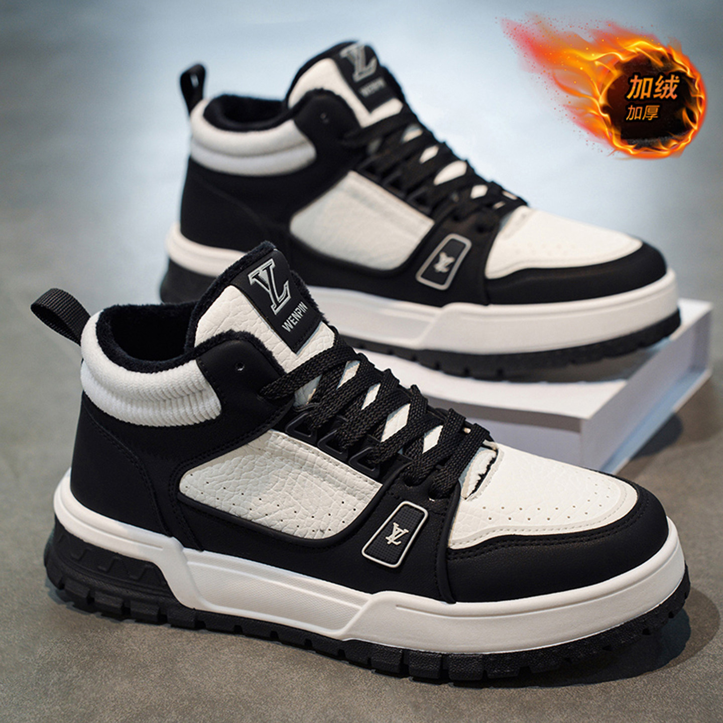欧洲站高帮男鞋2025新款冬季加绒保暖棉鞋男运动休闲板鞋中帮潮鞋