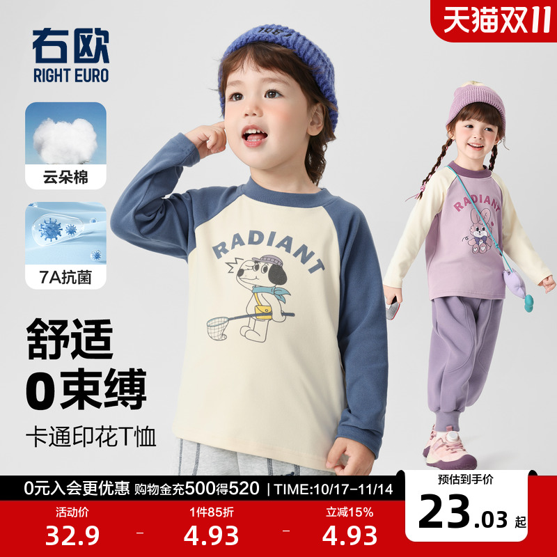 右欧男童女童长袖T恤打底衫卡通动漫春秋季新款童装上衣儿童内搭