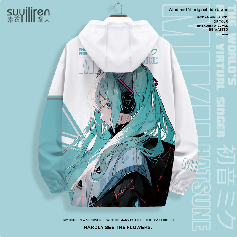 秋季初音动漫联名外套男生连帽夹克开衫卡通印花上衣薄款衣服宽松