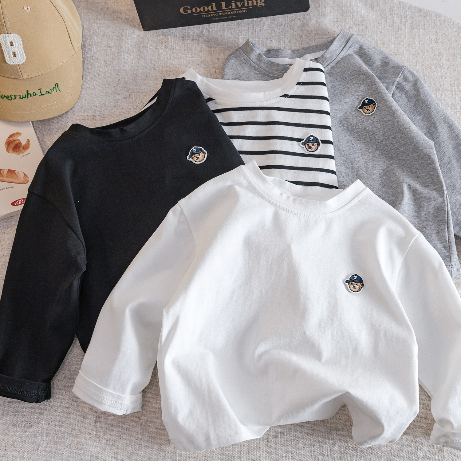 100%纯棉儿童长袖打底衫男童秋季日系卡通刺绣t恤洋气宝宝上衣潮