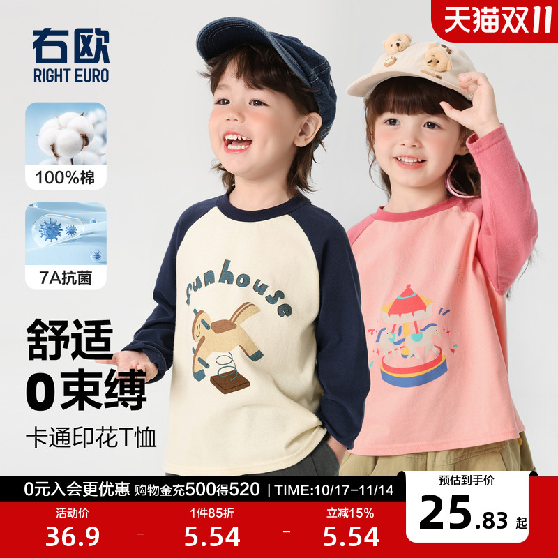 右欧男童长袖T恤女童打底衫春秋季新款童装儿童卡通动漫上衣内搭