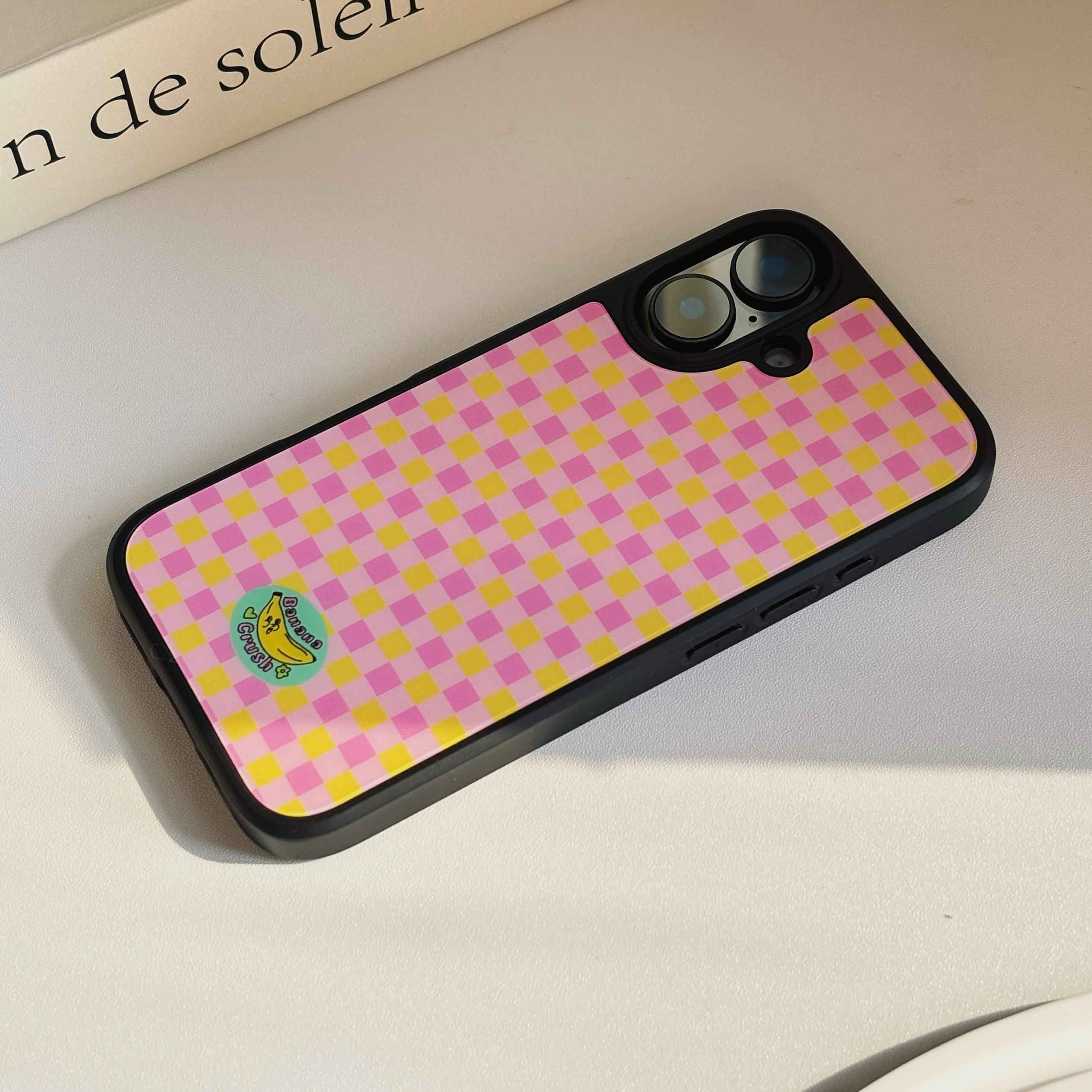 小众粉色菱格黑框磨砂磁吸手机壳适用苹果iPhone16promax手机壳17pro玻璃手机壳14pro全包13少女心甜美17