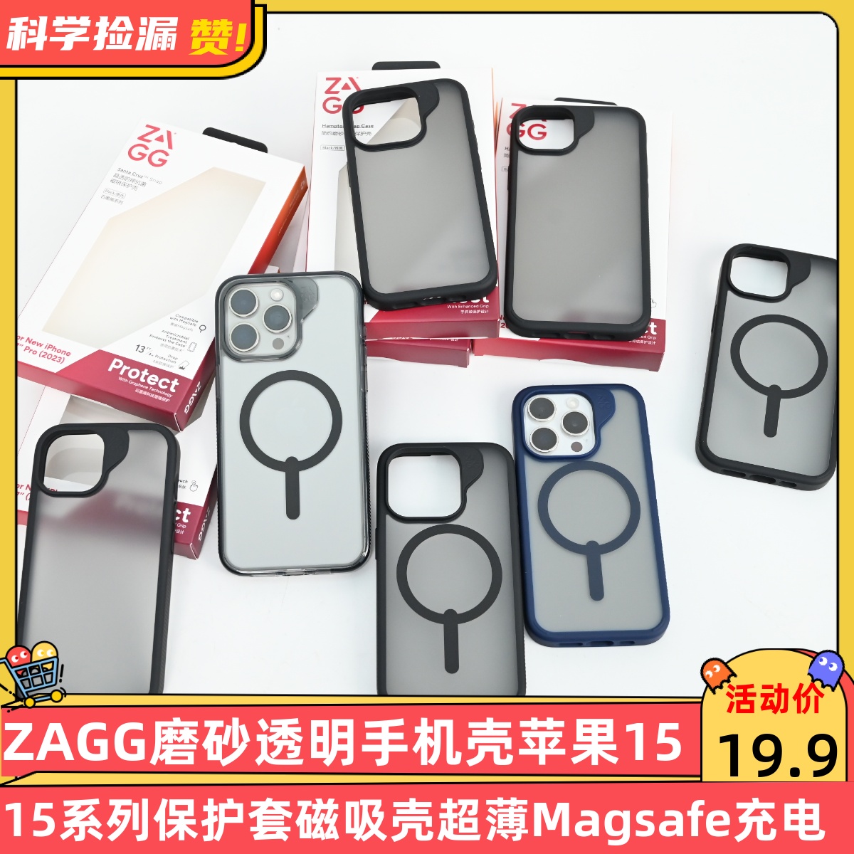 ZAGG磨砂透明手机壳苹果iPhone15系列保护套磁吸壳超薄Magsafe充电防摔全包简约iPhone15/15 Pro