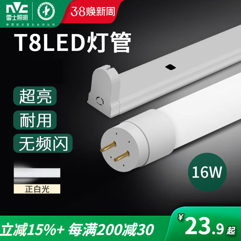 雷士照明t8 led灯管超亮长条t5一体化日光灯支架光管全套家用