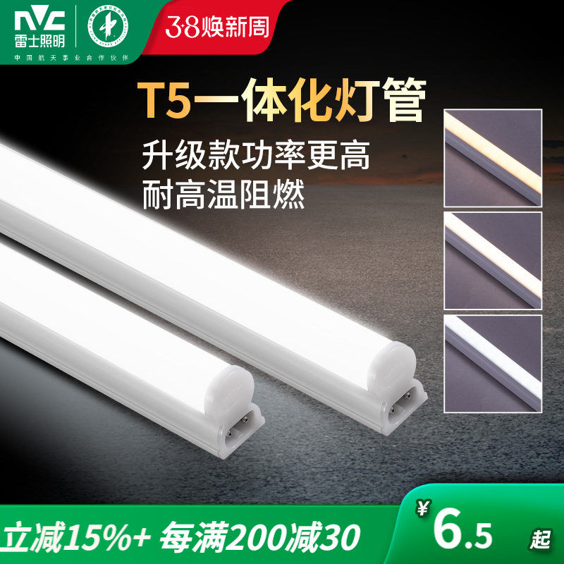 雷士照明led灯管t5一体化全套支架长条灯带1.2米家用店铺日光灯条