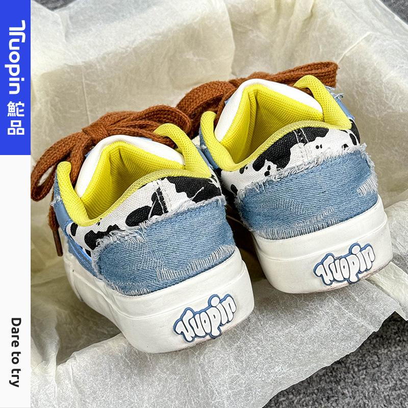 鮀品奶牛纹板鞋女2025新款原创鸳鸯鞋子休闲百搭情侣牛仔蓝帆布鞋