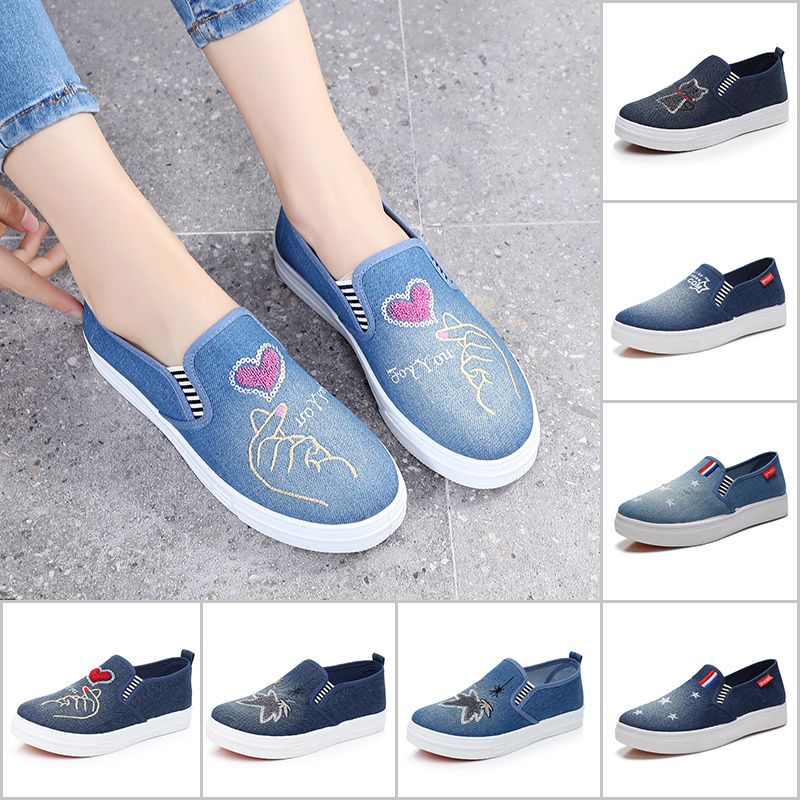 水洗产品比心散步鞋布鞋女鞋牛仔帆布鞋平底休闲鞋懒人一脚蹬单鞋