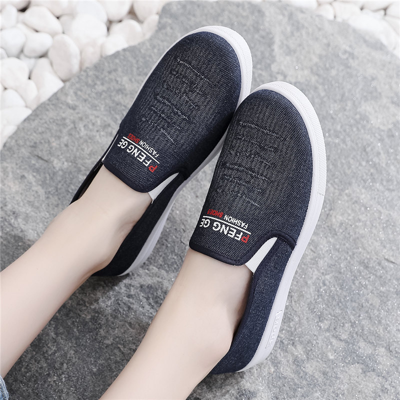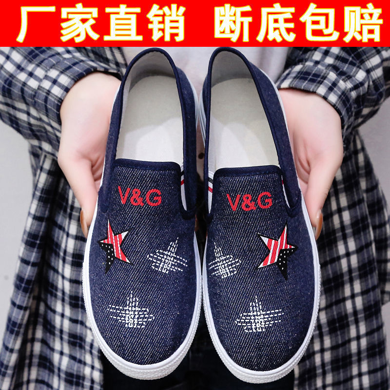 秋季新款老北京布鞋女牛仔帆布鞋平底防滑休闲鞋懒人一脚蹬单鞋子