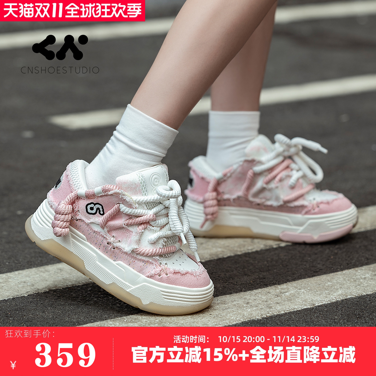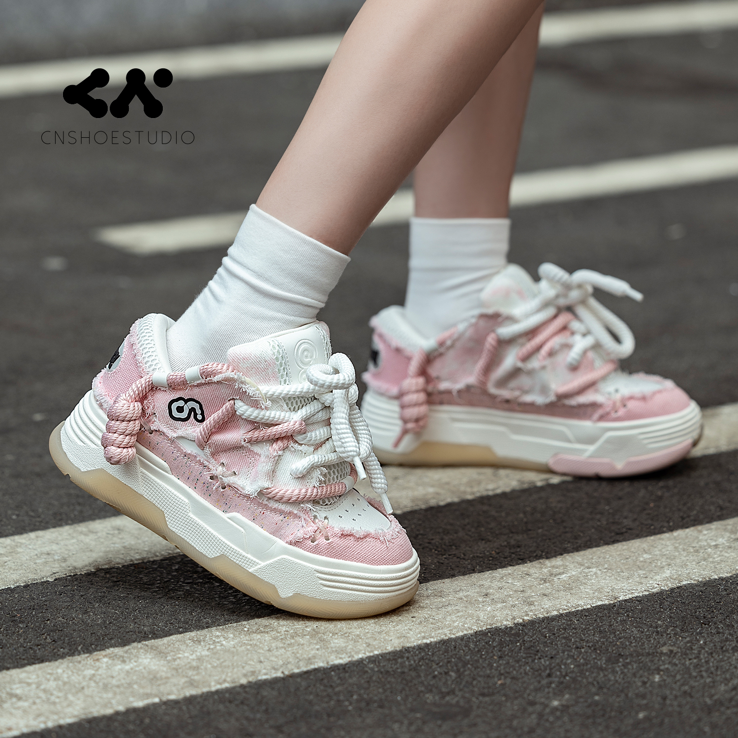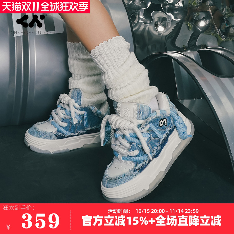 CN面包鞋牛仔粉帆布鞋板鞋男女同款潮牌鞋休闲百搭厚底增高板鞋