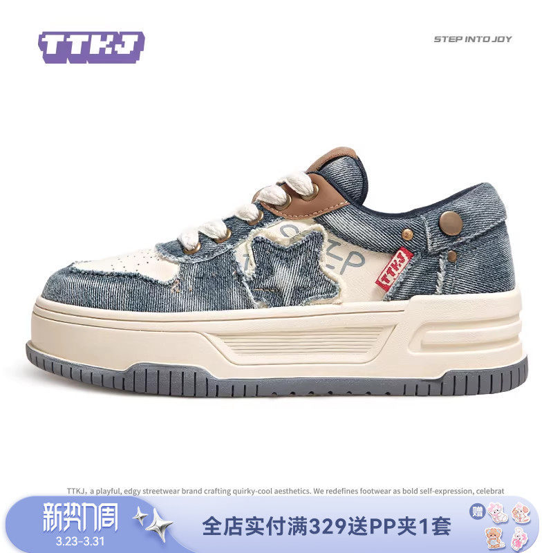 TTKJ厚底帆布鞋女2026春夏新款丑萌大头牛仔板鞋百搭休闲运动鞋子