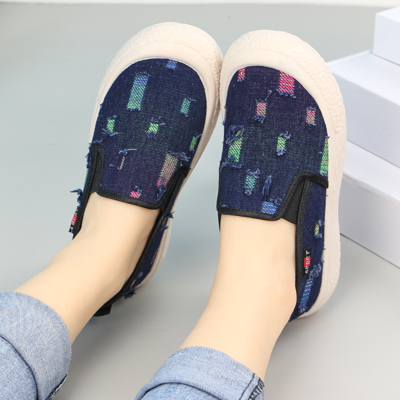 时尚休闲牛仔帆布鞋女春夏新款老北京布鞋韩版懒人渔夫鞋平底单鞋