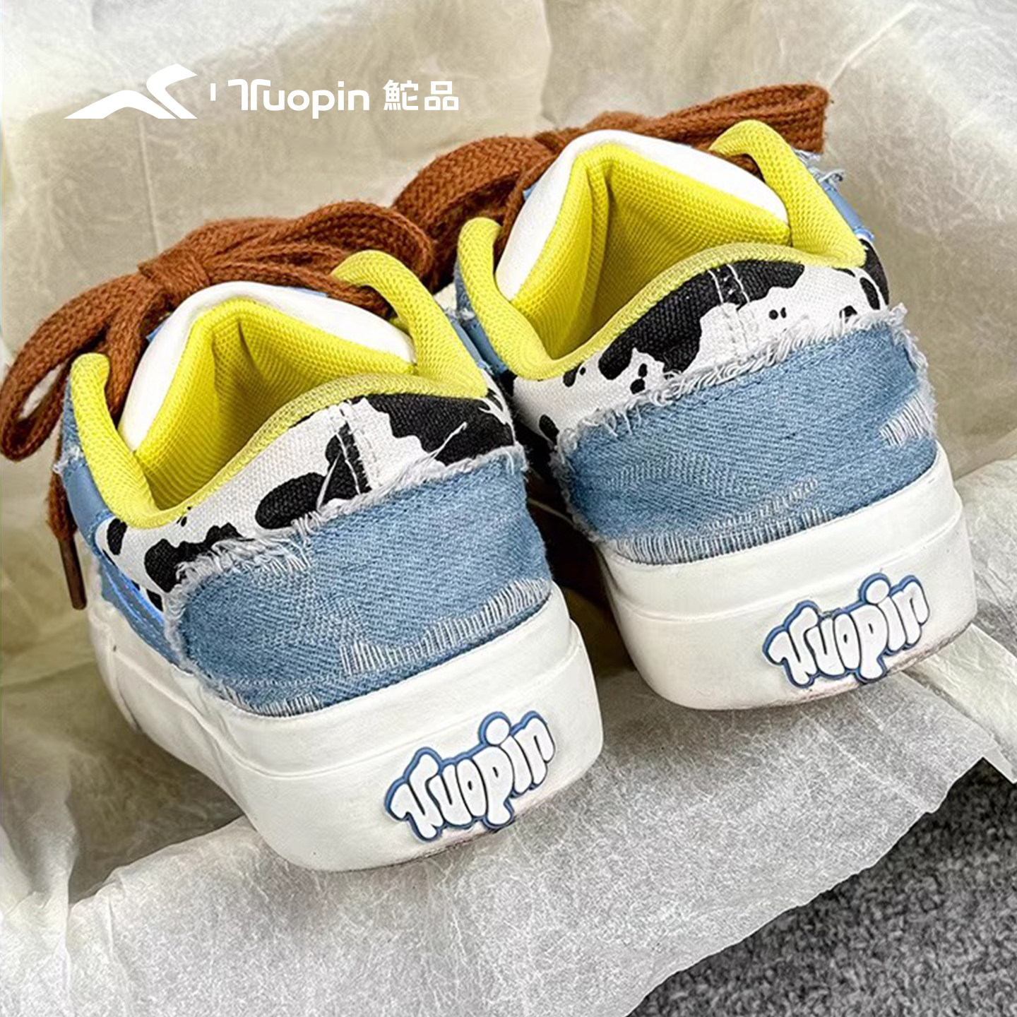 鮀品奶牛纹板鞋女2026春季新款鸳鸯鞋子休闲百搭加绒牛仔蓝帆布鞋