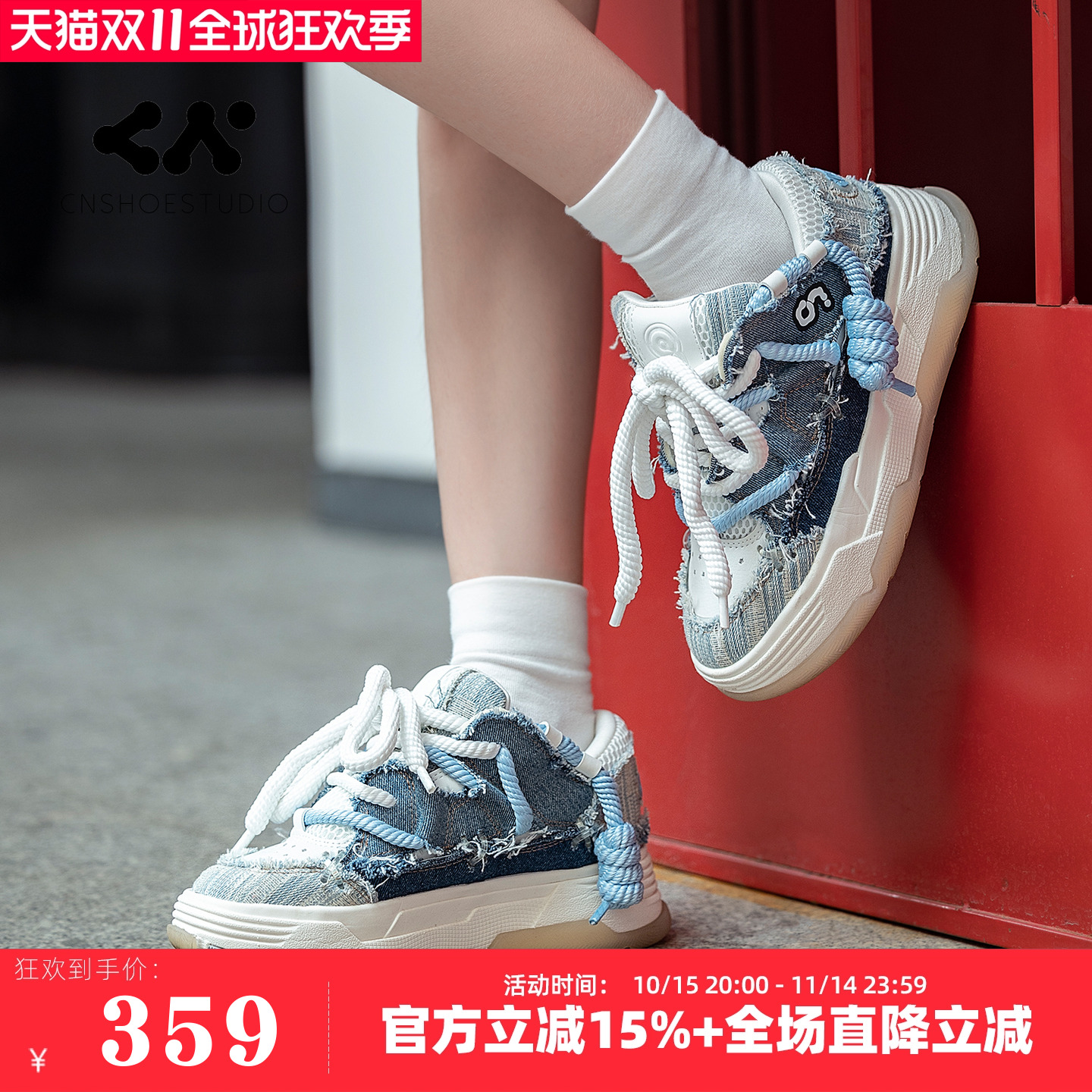 鮀品牛仔蓝板鞋女款2025秋冬新款休闲小众原创痛鞋百搭厚底帆布鞋