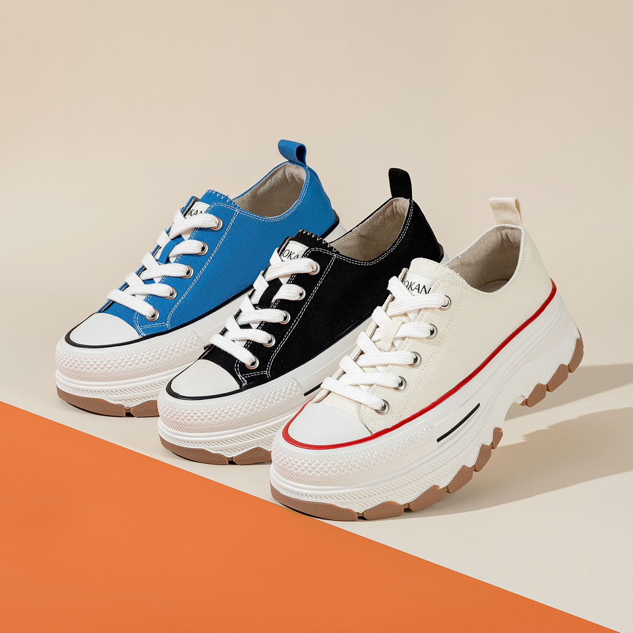 CN牛仔面包鞋女鞋2025年新款ins学生帆布鞋增高厚底情侣休闲板鞋