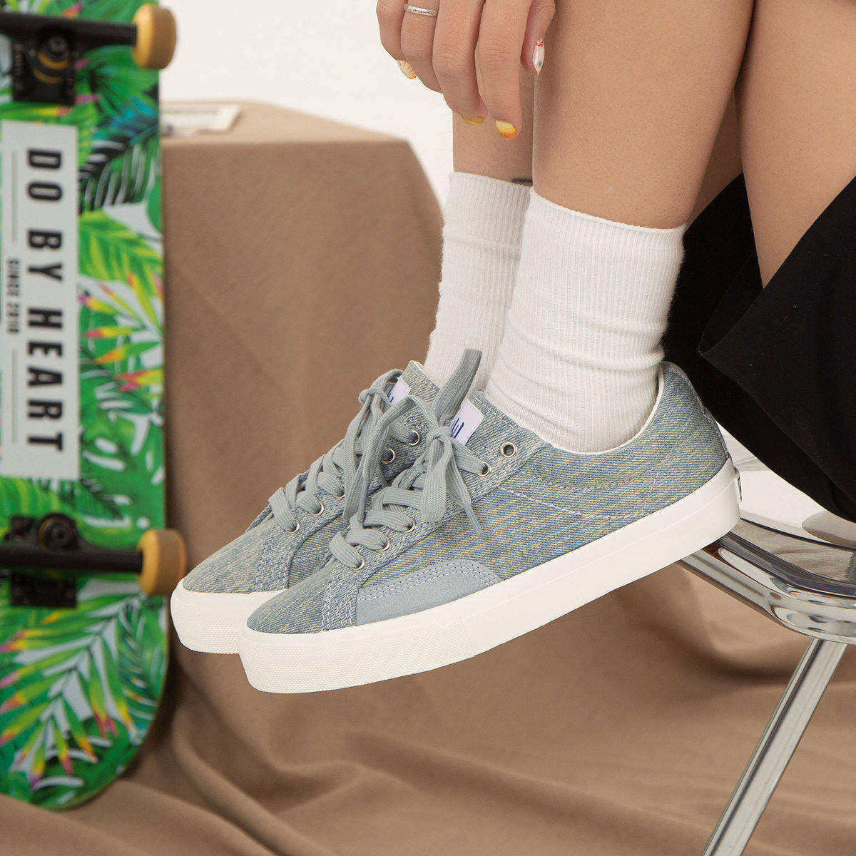 SEWBYSOU牛仔蓝夏季新款帆布鞋SBS低帮拼接滑板鞋男女户外休闲鞋
