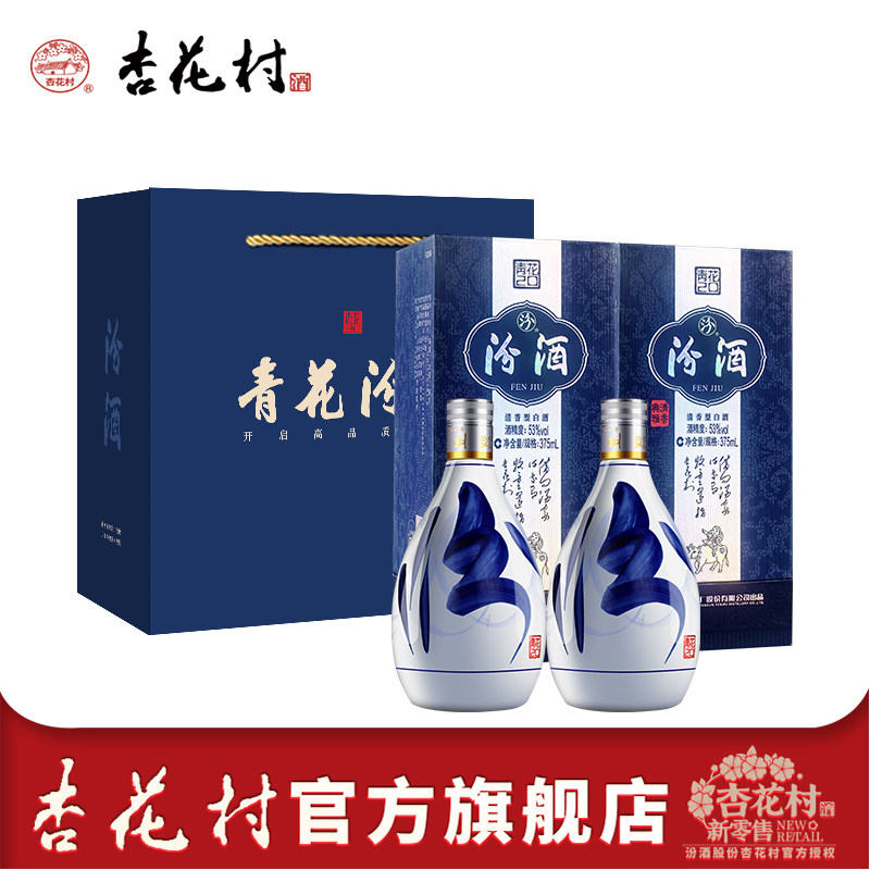 山西汾酒杏花村官方53度青花20汾酒375ml*2瓶清香型白酒高端送礼