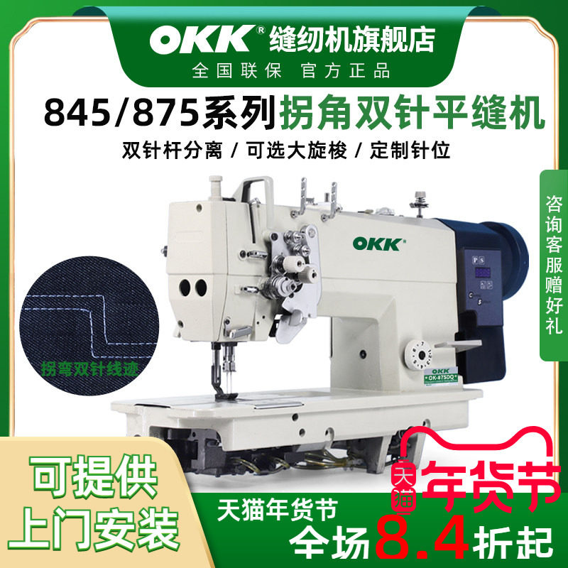 OKK845/875拐角双针缝纫机做工作服牛仔直角转弯双针平缝机工业用