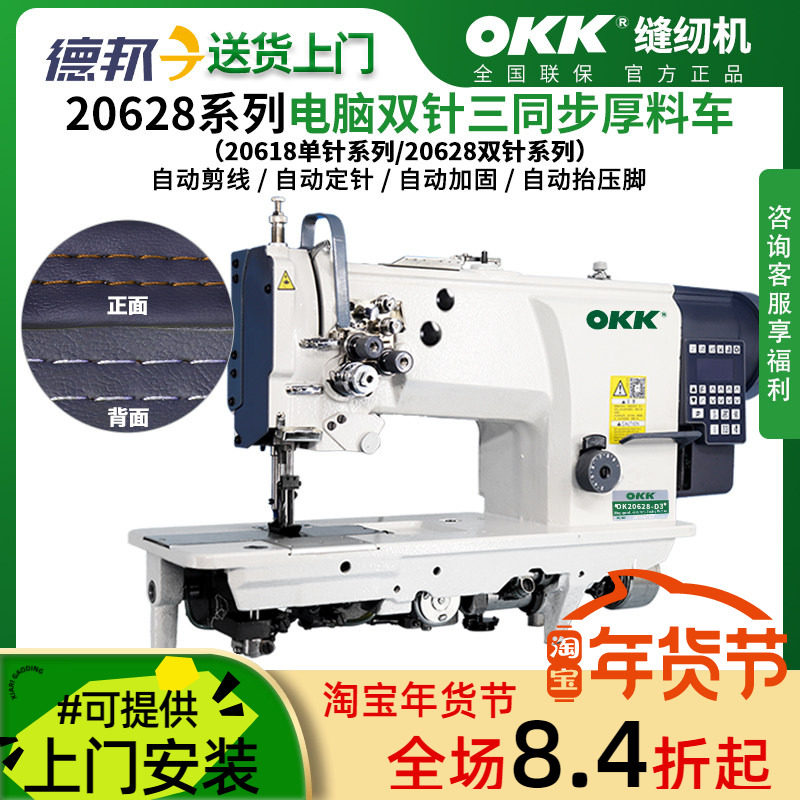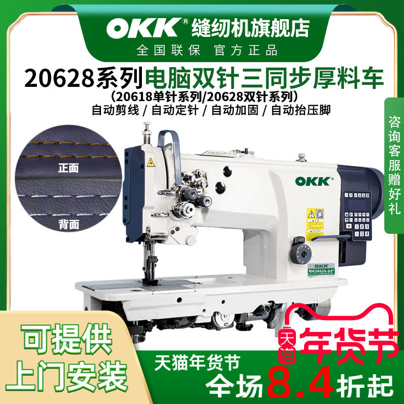 OKK-20628双针缝纫机三同步电脑直驱沙发皮革汽车座垫厚料双针车
