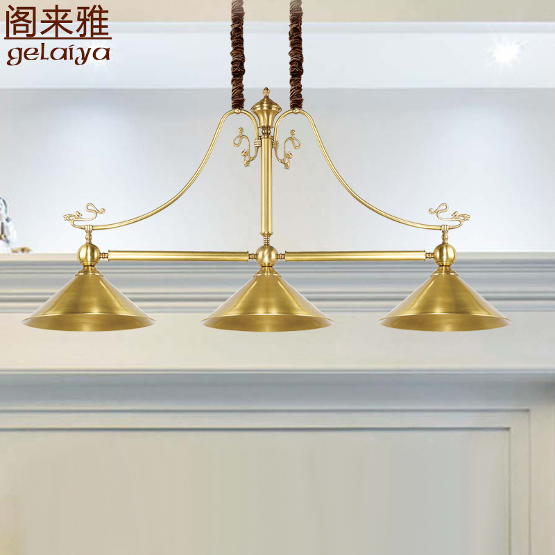 美式餐厅灯吧台吊灯三头长形 酒店会所台球室桌球灯 复古全铜灯具