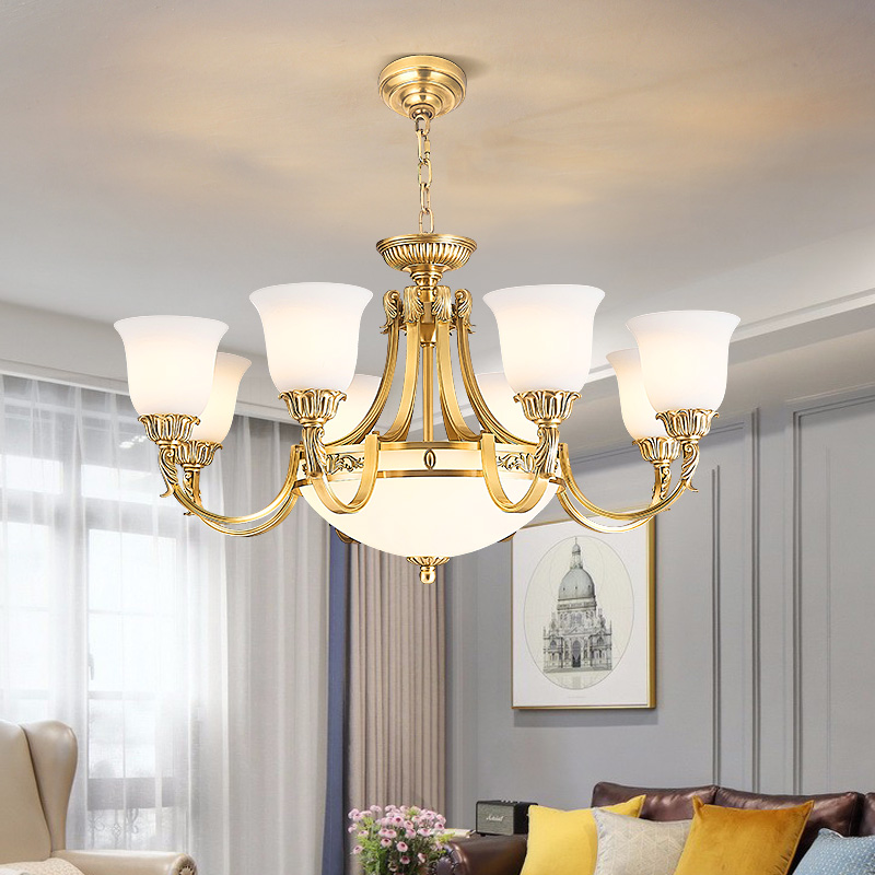 奥灯美式个性客厅餐厅全铜灯具温馨卧室书房单层家用6头吊灯1778