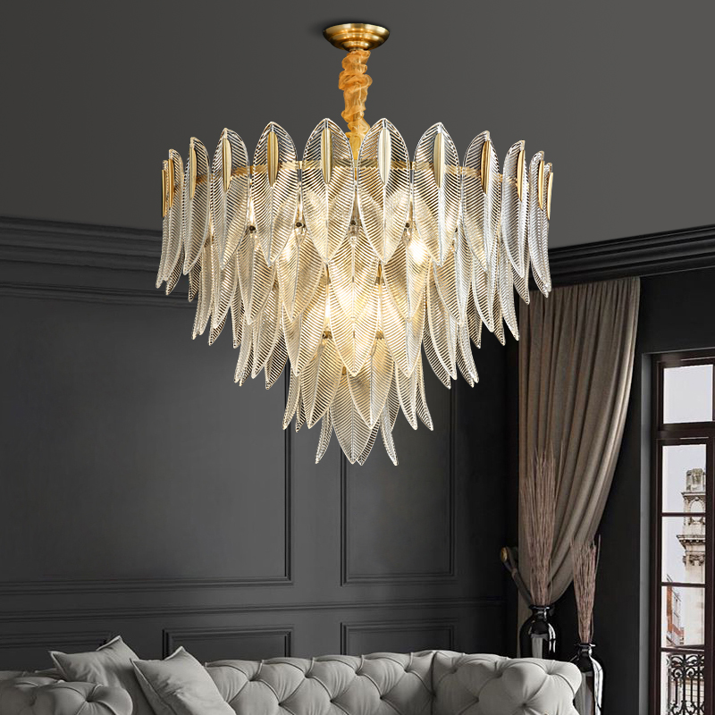 后现代轻奢吊灯客厅灯2023年新款树叶玻璃餐厅大气家用全铜灯具