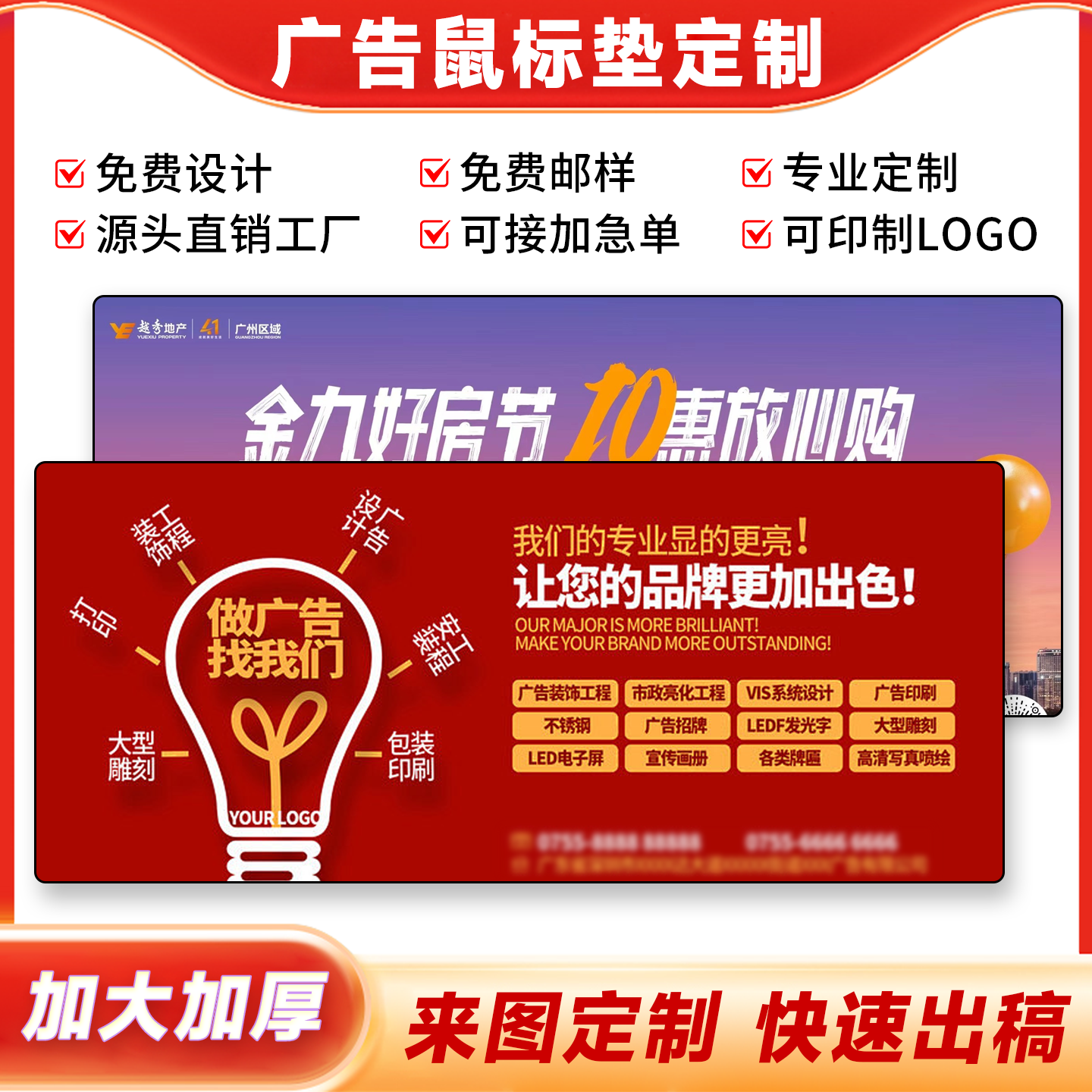 源头工厂广告鼠标垫定做来图定制礼品橡胶LOGO自定义批量超大桌垫