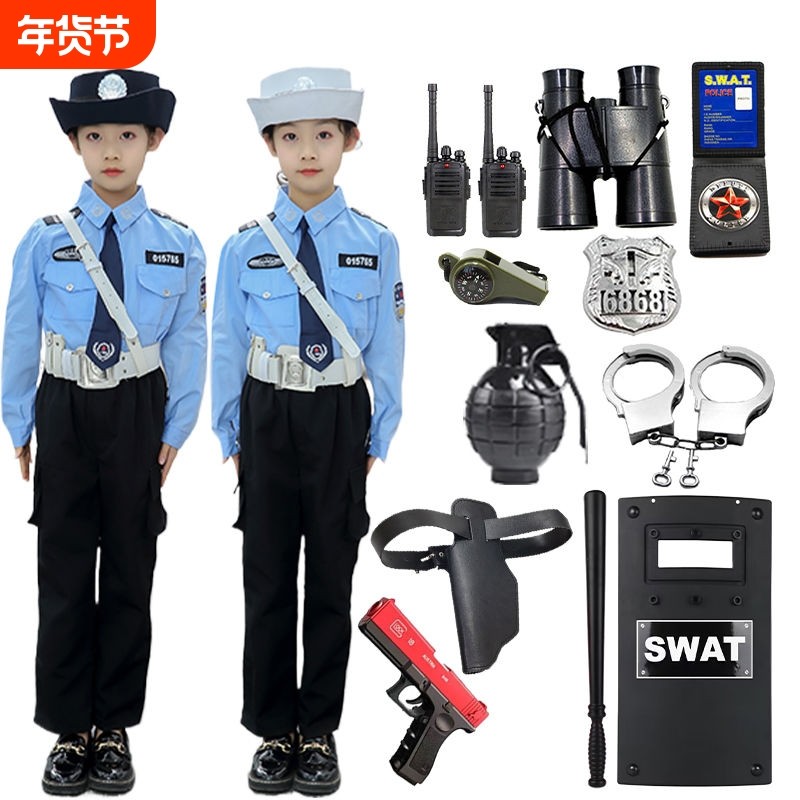 圣诞节儿童公安玩具套装男童军装特警官衣服小警察装备角色演出服
