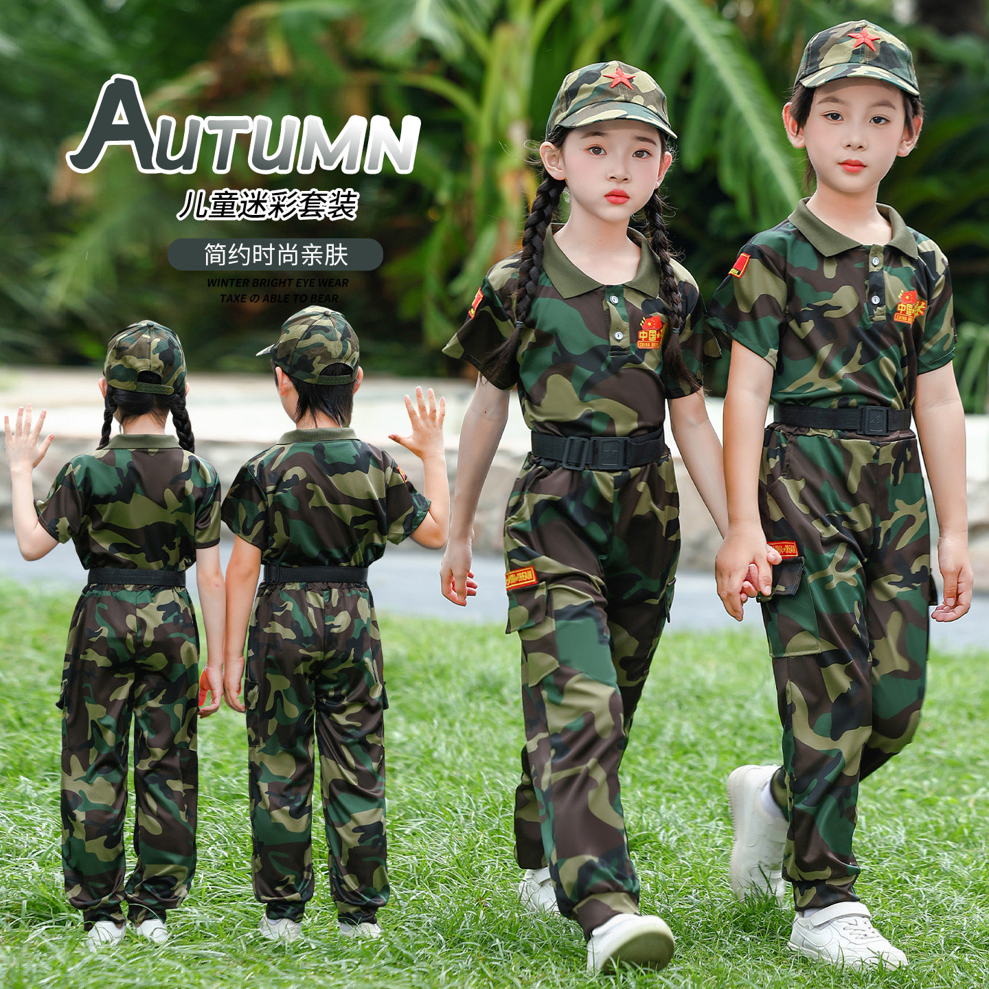 儿童迷彩服套装幼儿园中小学生短袖夏令营军训服演出服男女童军装