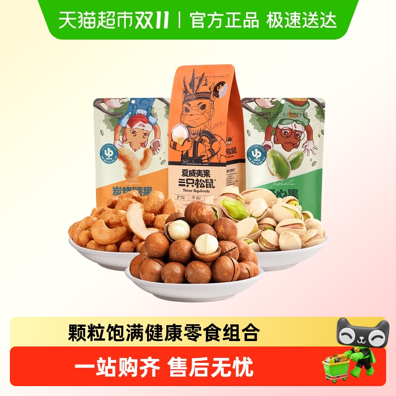 三只松鼠混合坚果零食组合350g夏威夷果腰果干货果仁开心果干果