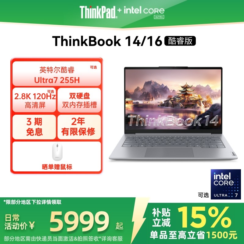 【政府补贴】ThinkPad联想ThinkBook14/16酷睿Ultra1T固态学生办公商务游戏笔记本电脑官方旗舰店