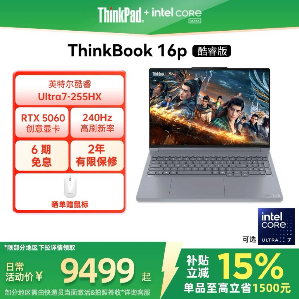 ThinkPad联想 ThinkBook 16P 独显RTX4060/5060 16英寸学生游戏本设计笔记本电脑百亿补贴