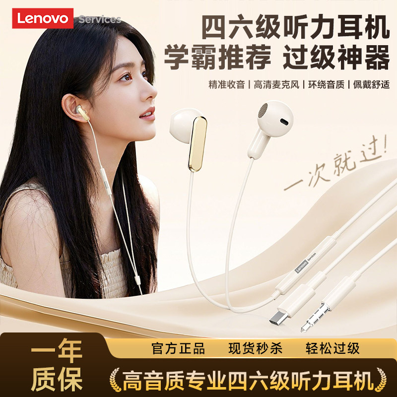 联想 有线耳机笔记本线控圆孔大学生英语听力四六级专用电脑考试