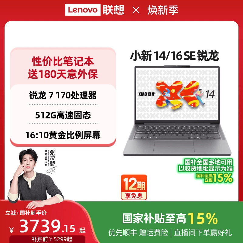【国家补贴】联想小新14SE/小新16 SE可选 锐龙轻薄本笔记本电脑 学生办公性价比电脑笔记本 联想官方旗舰店