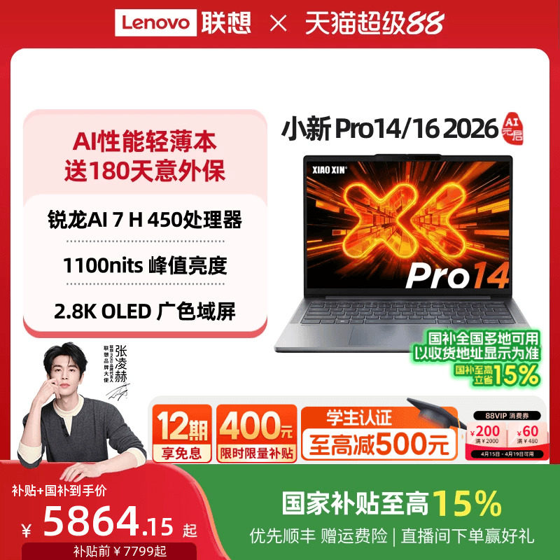 【国家补贴】联想小新Pro14/Pro16 GT可选 锐龙版2026 14/16英寸轻薄本学生游戏笔记本电脑官方店电脑笔记本