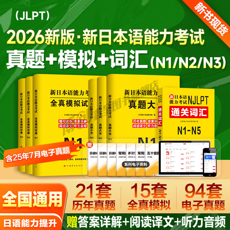 2026年日语能力考试n1历年真题n2模拟试卷n3词汇红蓝宝书文法jlpt新日本语能力等级考试标准教材备考资料练习刷题