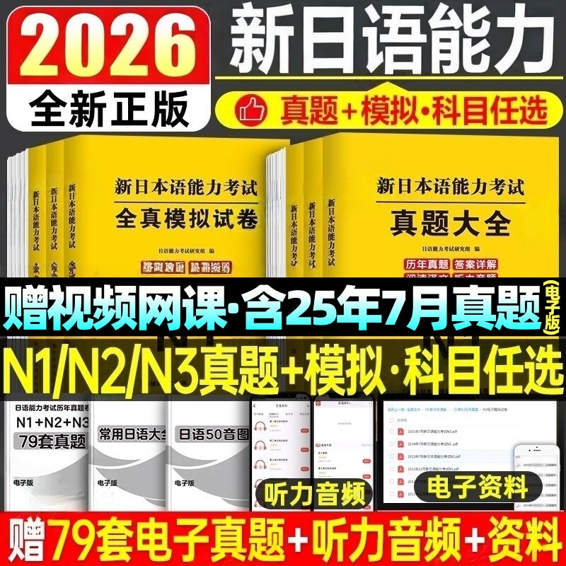 2026jlpt日语等级考试日语n1日语n2日语n3真题2026新日本语能力测试历年真题试卷冲刺模拟练习试题备考学习资料网课视频词汇单词书